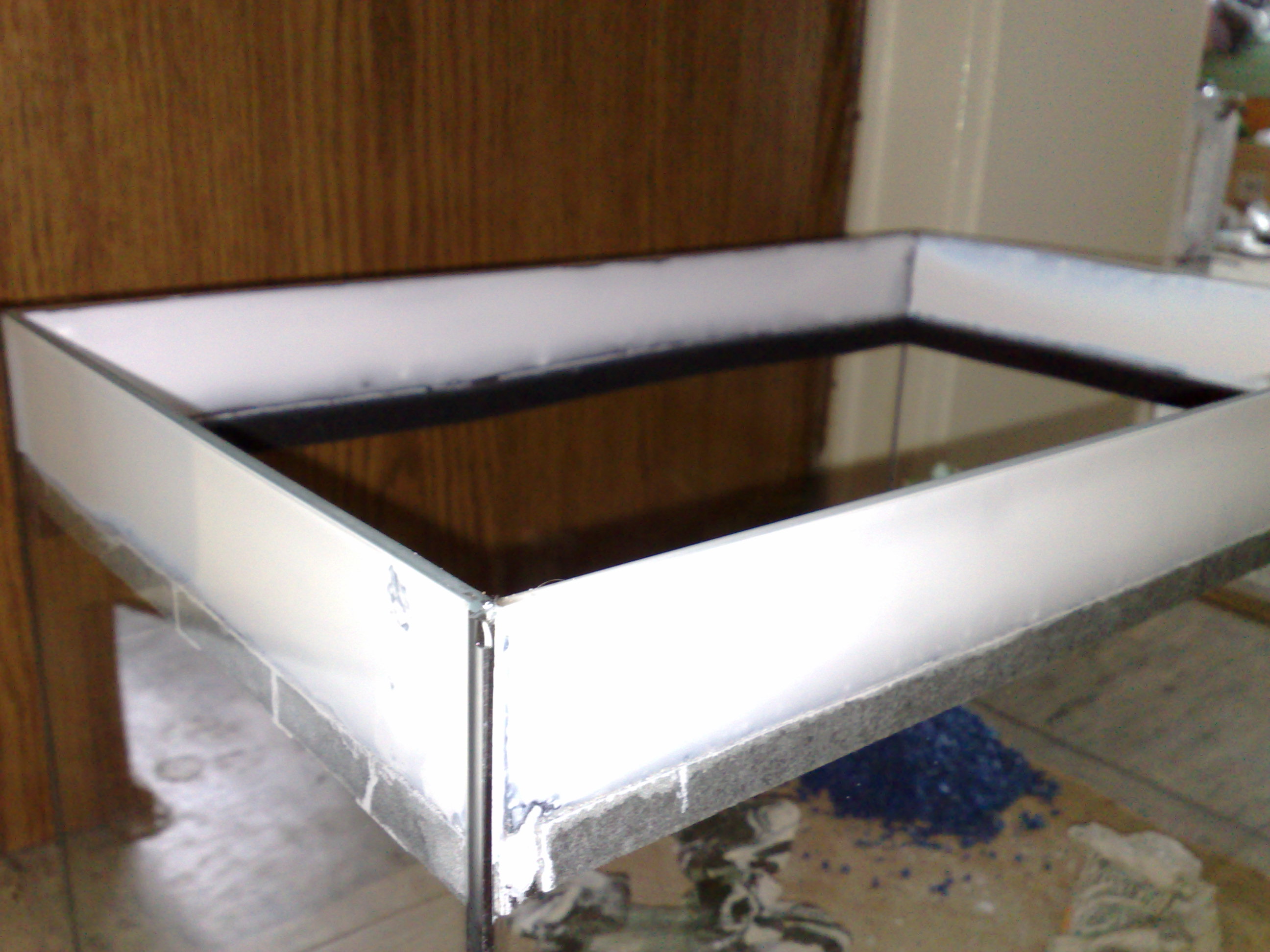 Das Ganze wird noch mit Lehm verschönert und eine Plexiglasscheibe mit Silikon Befestigt (In einem Weiteren Bild zu sehen )