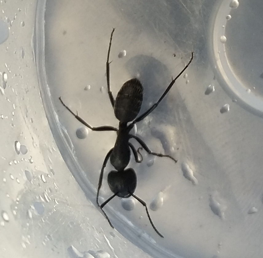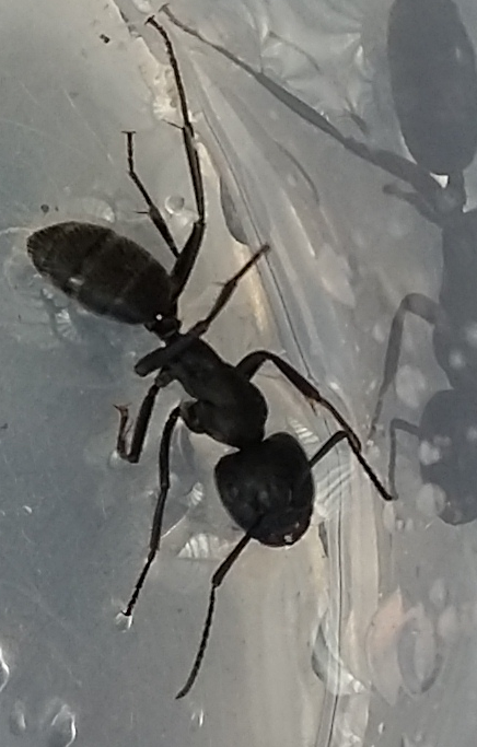 Im Becher der Soldat, auf der Pflanze die Arbeiter.. Hinterteil ist spitz! Sie sind so gross wie die Roten großen Waldameisen jedoch kommt mir der Soldat mit dseinem Beisswerkzeug und Kop0f grösser vor!