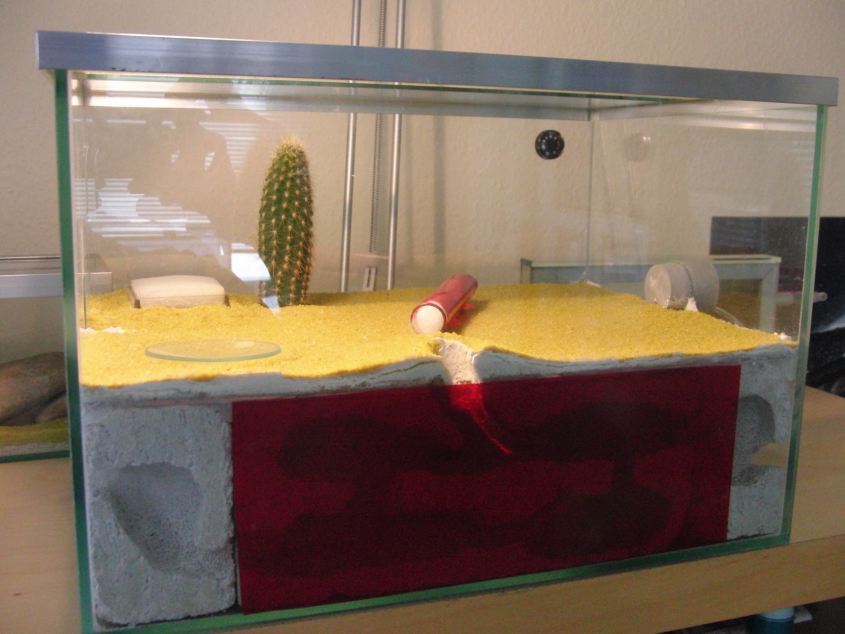Das Formicarium ist ein selbstgebautes Apartment (30x20x20) Das Nest liegt also unter dem Boden.