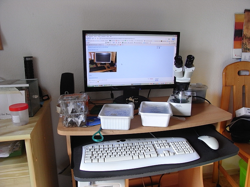 . Bis dahin haben Sie Pech, stehen ca. 1,5 m. hinter mir im Regal (Farm) bzw. auf dem Tisch (Insel). Meine Rennmäuse haben da bessere Karten, die können zumindest von oben schräg runterguggen. Nur interessieren die sich nicht für's Ameinsenforum (für's Rennerforum aber auch nicht....). Trotzdem bin ich immer auf Tuchfühlung: liege am Boden auf meiner großen, kuschligen "Lasius schmusus" aus dem bekannten Schwedischen Möbelhaus!