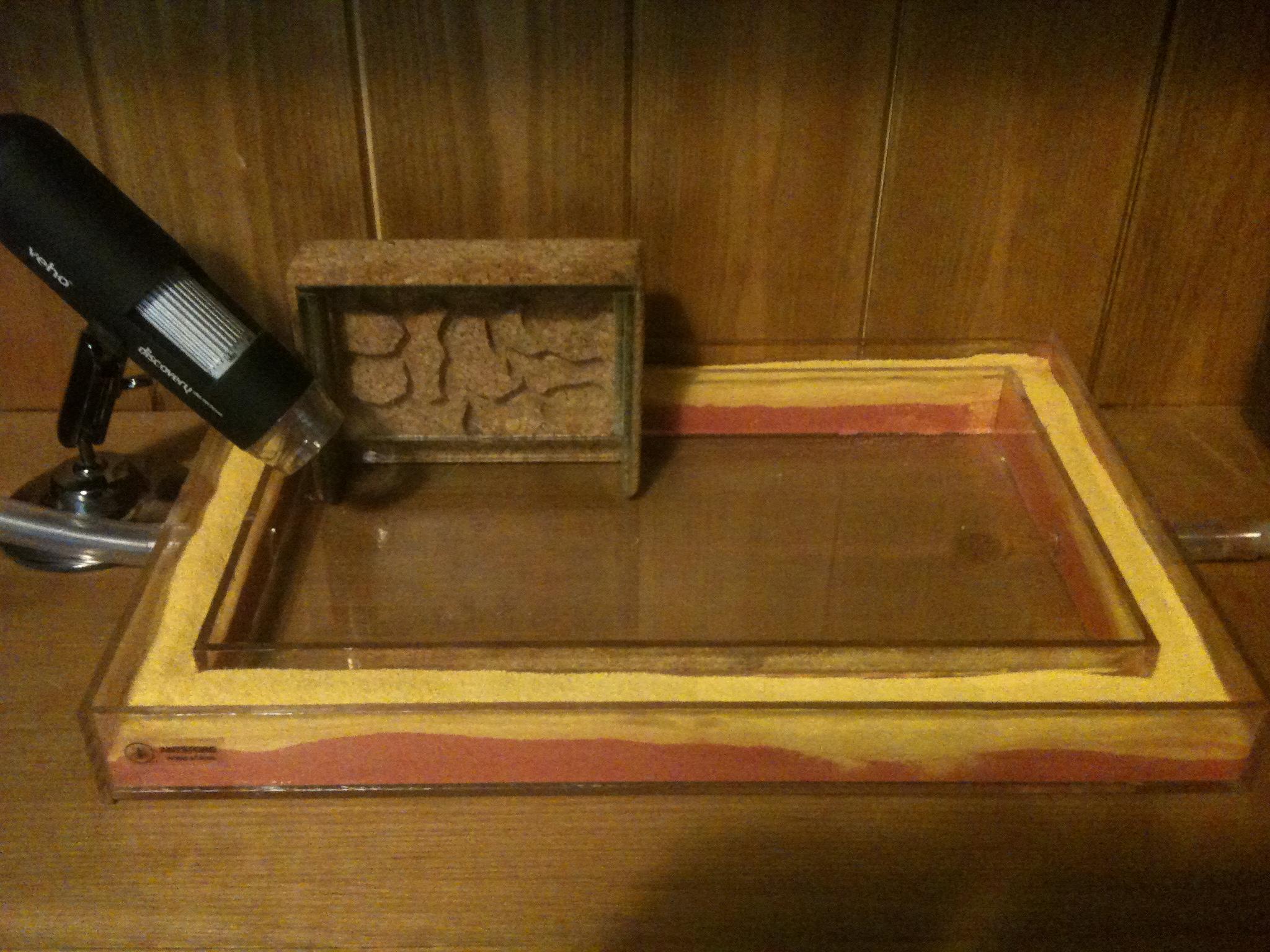 As I initially was going to put them in the appartment I ordered fine sand (0-1mm) and stones (1-8mm) to use with what I already had, I think I need some light sand 1-2mm for the arena but I can wait until they move in to the Y-Tong before doing any upgrades.