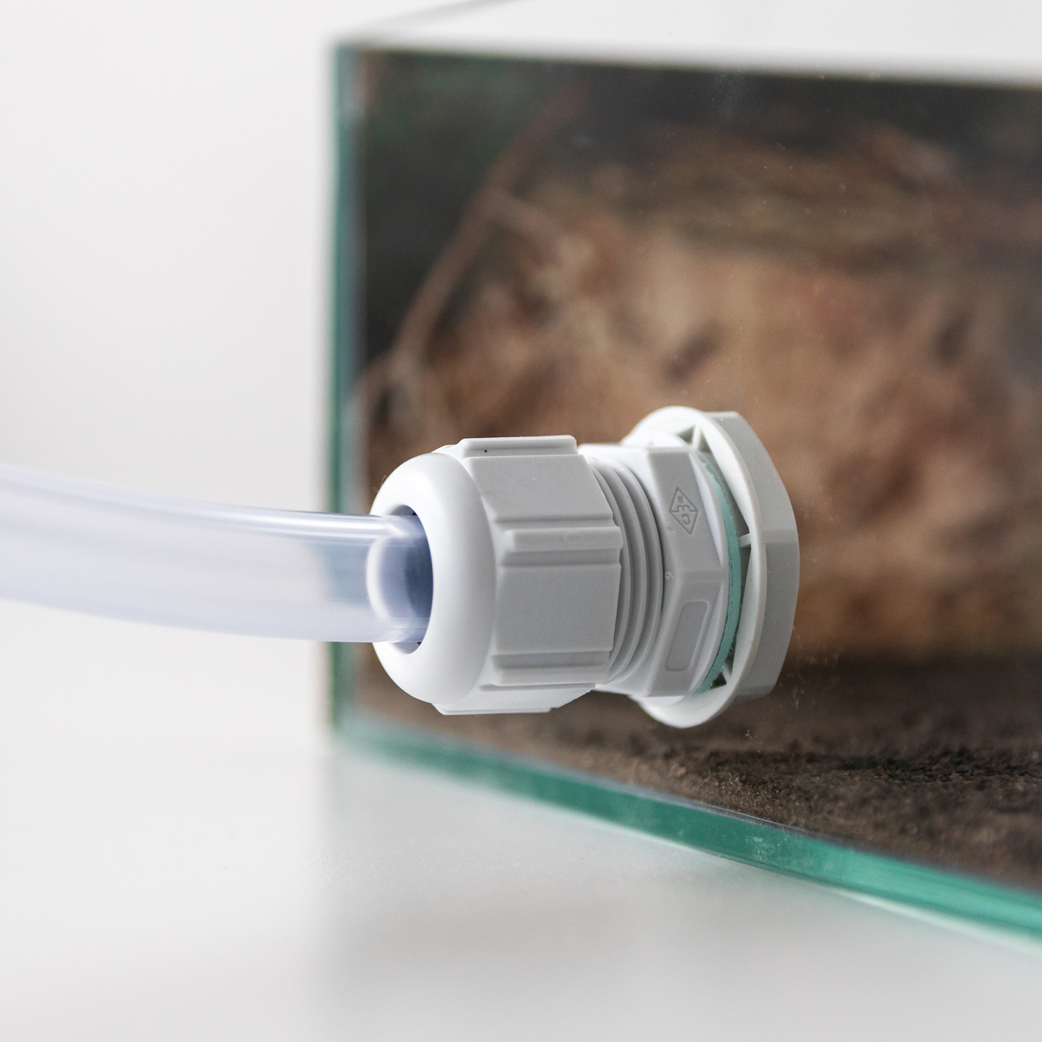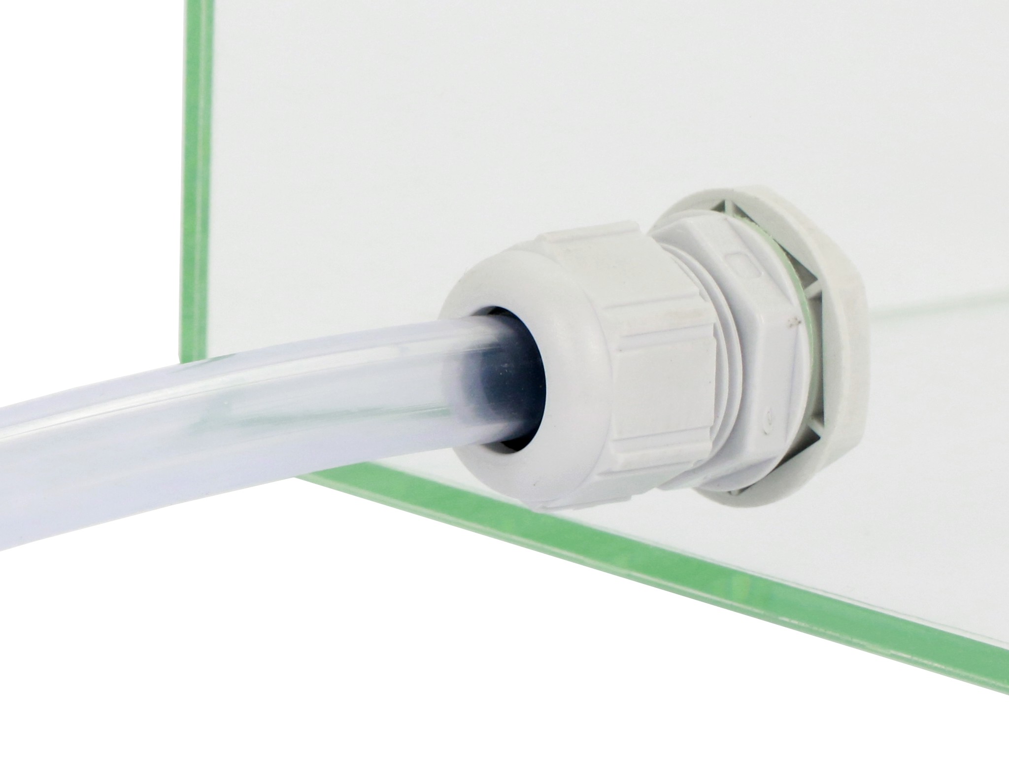 Beschreibung: Dieser Beckenverbinder, wird durch die Bohrung gesteckt und mit der beiliegenden Gegenmutter verschraubt. Somit ist gewährleistet, dass die Verbindung ausbruchssicher und auch beim Bewegen der Becken sicher hält. Am anderen Ende wird ein passender Schlauch eingesteckt.