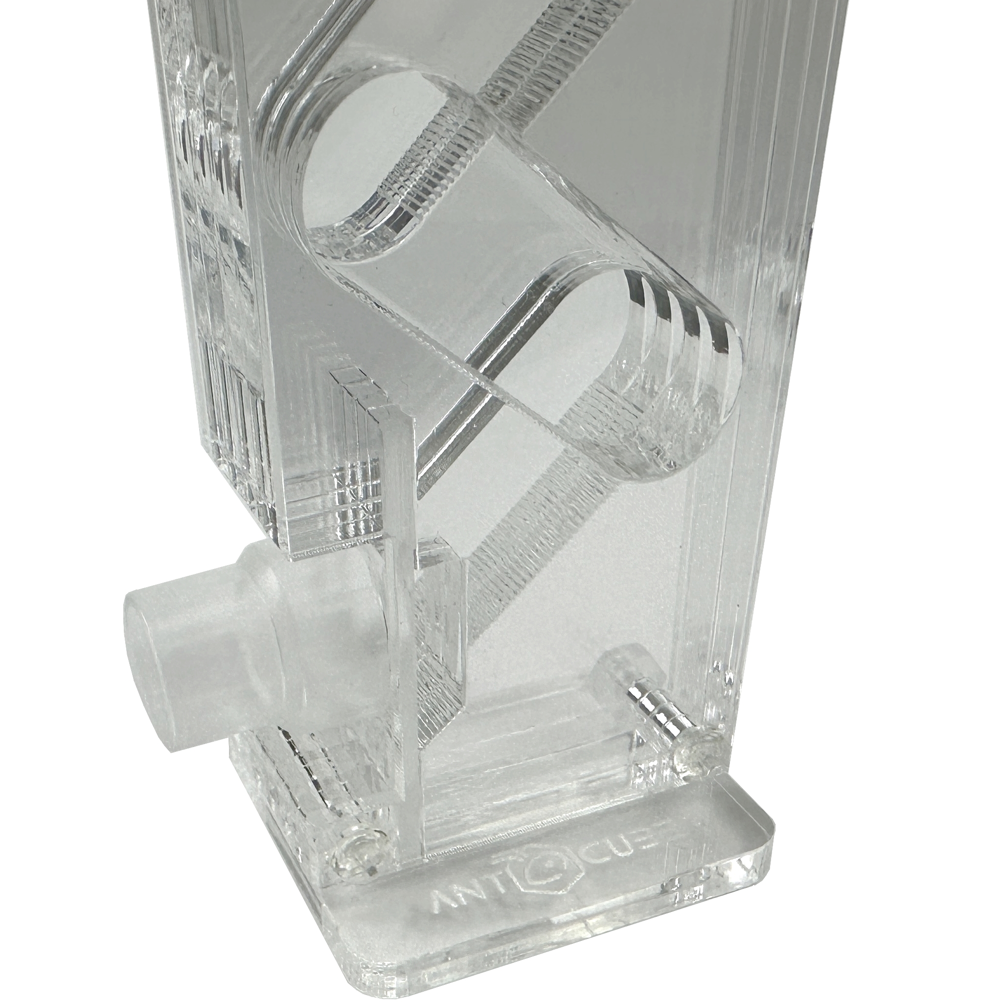 Zur Verwendung mit Acrylrohren (z.B. Ameisenrohr - glasklar 20mm - 1m Art.Nr. 1000320) anstelle von Schläuchen benötigt man insgesamt 3x den “Rohrverbinder glasklar für 20mm - I” (Art.Nr. 1005624). Davon 1x für die Buchse der Ameisenfarm und 2x für die beiden Buchsen des Treppenhaus. Außerdem muss bei alten Ameisenfarmen (alles vor 12/2023 gekauft) noch ein “Dichtungsring transparent flexibel” (Art.Nr. 1001437) auf die Buchse der Ameisenfarm geschoben werden. Ansonsten sitzt der “Rohrverbinder glasklar für 20mm - I” (Art.Nr. 1005624) zu locker auf der Buchse der Ameisenfarm. Außerdem sollte, falls eine Formicarien Unterlage für die Ameisenfarm oder Arena verwendet wird, ebenfalls eine für das Treppenhaus verwendet werden, da es ansonsten einen leichten Höhenunterschied zwischen Treppenhaus Buchse und den Anschlüssen an Ameisenfarm und Ameisenarena gibt.