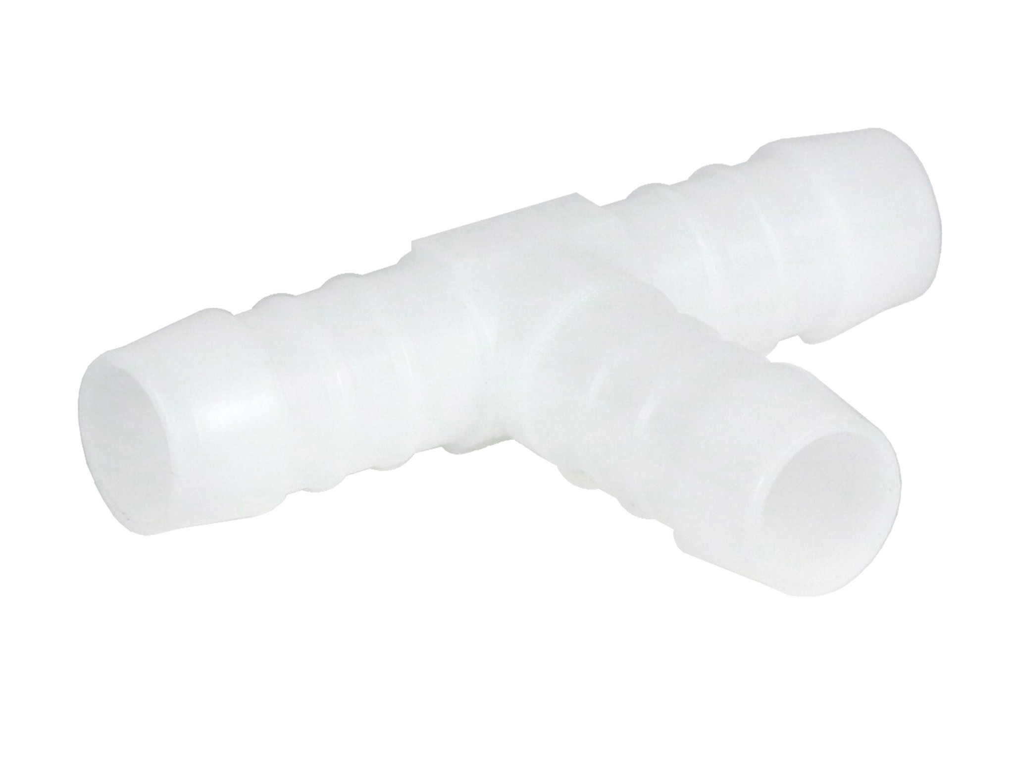 Dieser T-Schlauchverbinder verbindet Schläuche mit einem Innendurchmesser von 16 mm (geeignet für unsere Schläuche mit 20 mm Außendurchmesser).