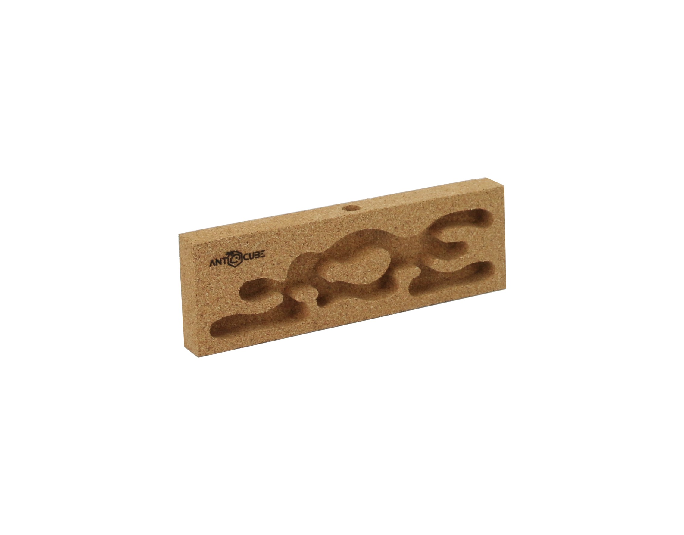 Beschreibung: Dieses Korknest mit vorgefertigten Gängen und Kammern ist geeignet für diverse Ameisenarten, insbesondere für in (Tot-)Holz nistende Arten. Es verfügt über eine Bohrung als Nestzugang.