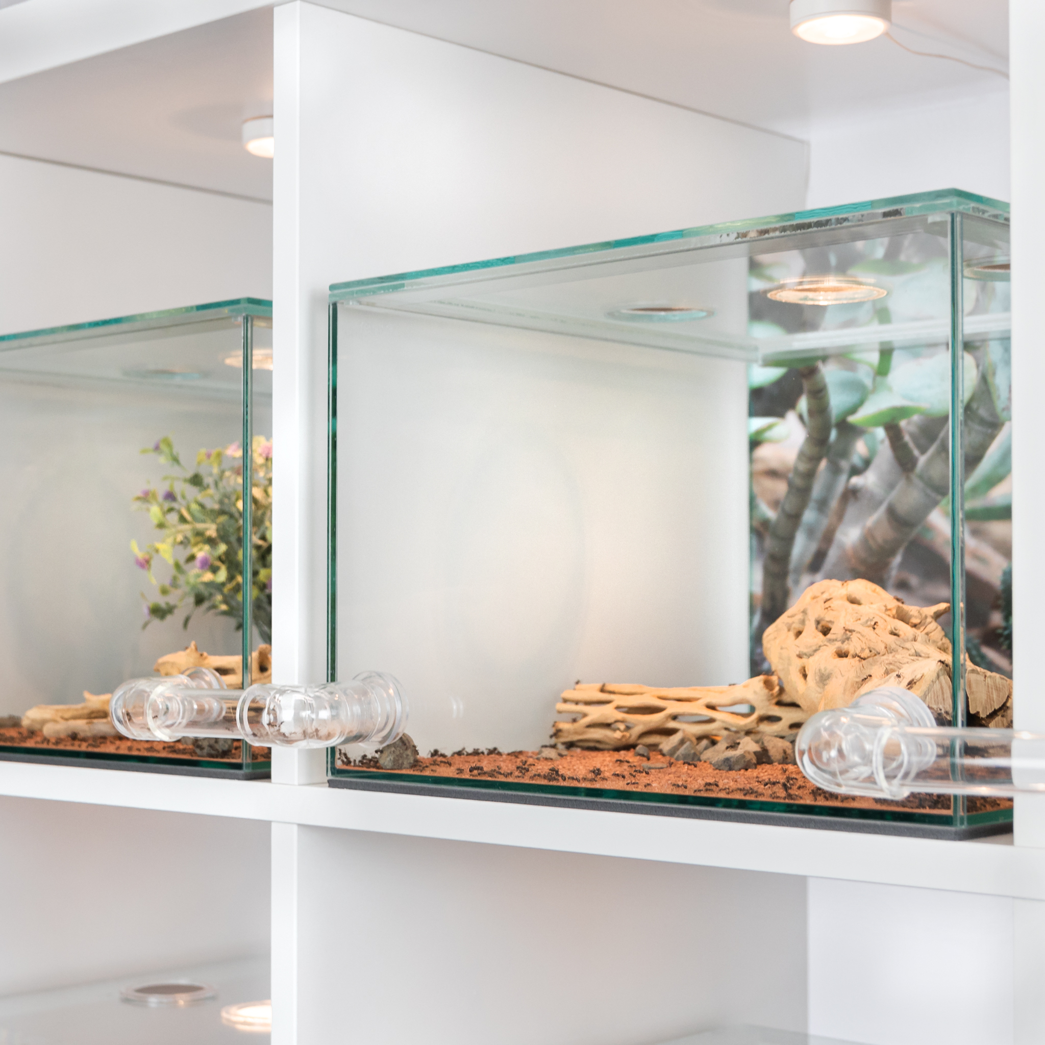 Description: Our ANTCUBE fitted arena, has been designed to fit comfortably even in smaller shelves. For example, it fits perfectly into a Kallax shelf. The holes (center point) are located on the front side (left and right) at 3cm height and 3cm distance from the outer edge. Due to the positions of the 27mm holes on the front, (instead of on the side panels as usual) you can easily connect more arenas and ant farms without losing space on the sides, or blocking access to the holes. Arena cover, escape protection frame, connecting elements like tube or hose connectors are available separately.