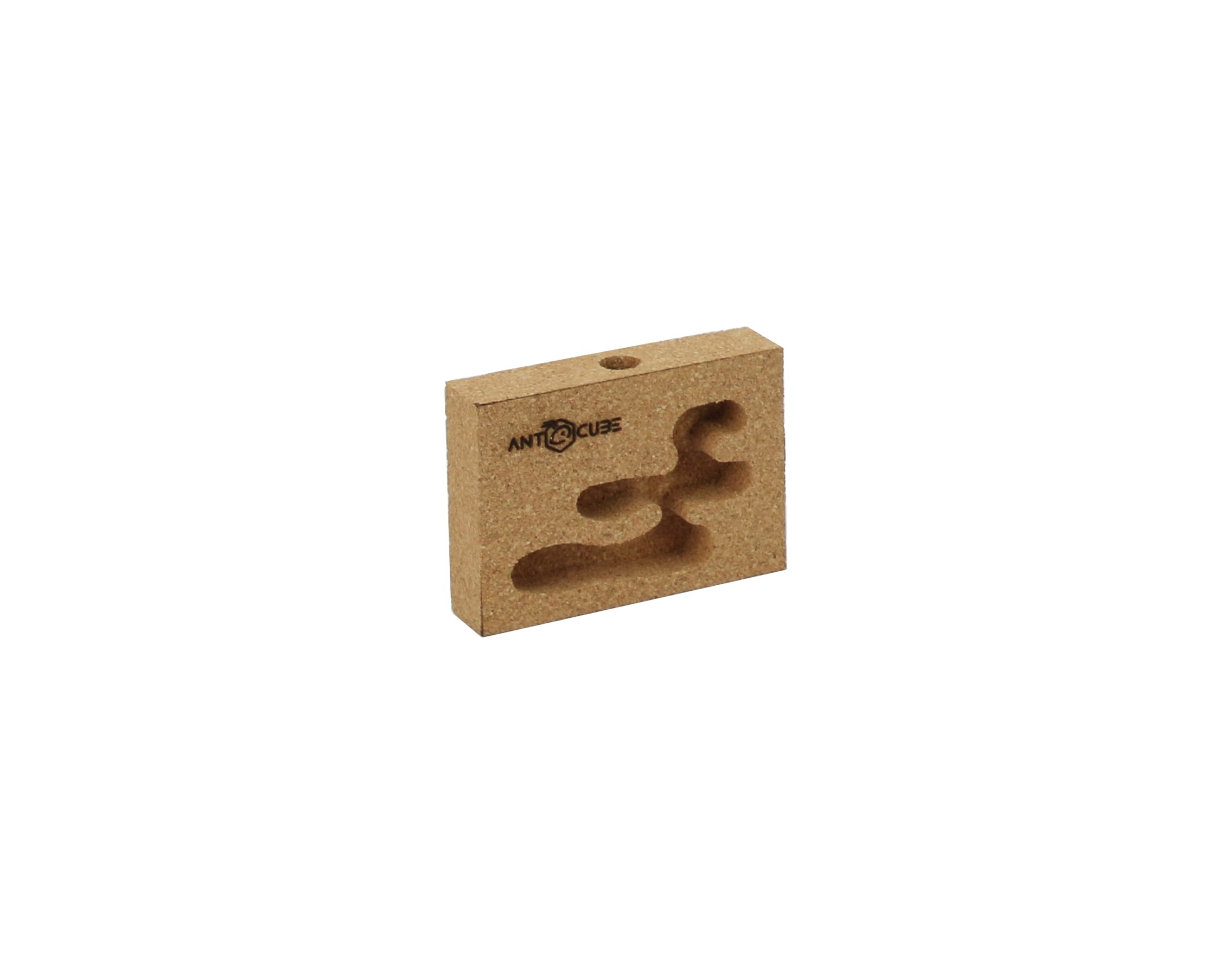 Description: This cork nest with prefabricated passages and chambers is suitable for various ant species, especially for species nesting in (dead) wood. It has a hole for nest access.