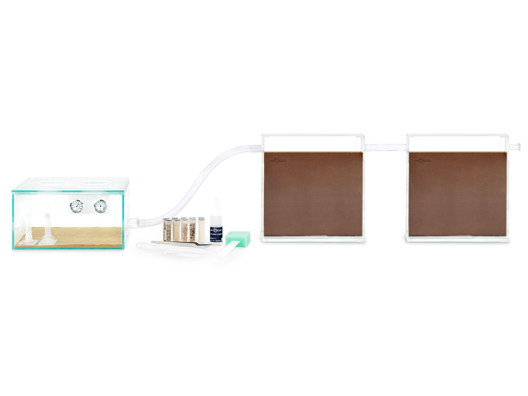 This starter set is especially suitable for various species of the genus Messor. One of the two farms is intended for storing the seeds and ant bread and should therefore be kept completely dry to prevent the seeds/grains stored there by the ants from germinating or becoming moldy.